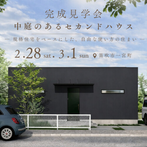 こんにちは。工務の山本です。2/7㈯、8㈰に見学会を行う、中央市のチェックハウスが完成しました。建物工事は昨年末にほぼ完成しておりましたが、年明けから着手した外構工事も終わり、全ての工事が完了しました