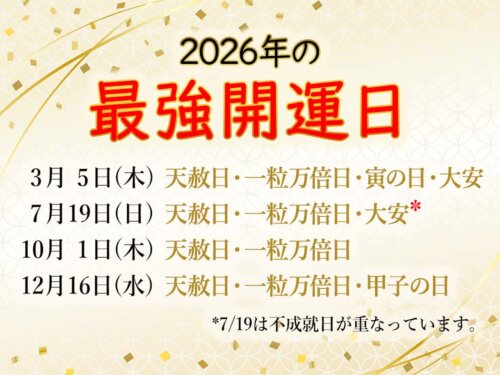 こんにちは、スタッフ小林です☺ みなさん知っていましたか? 本日2026年3月5日は、かなりレアな開運日らしいです。 ・天赦日・一粒万倍日・寅の日・大安&nb