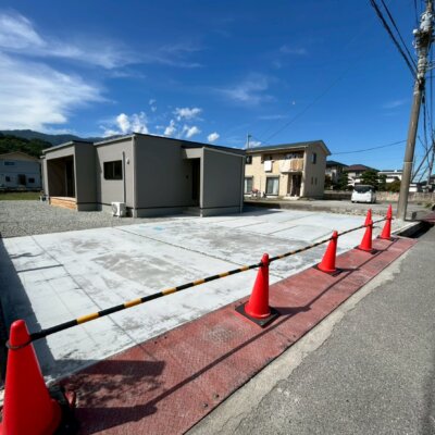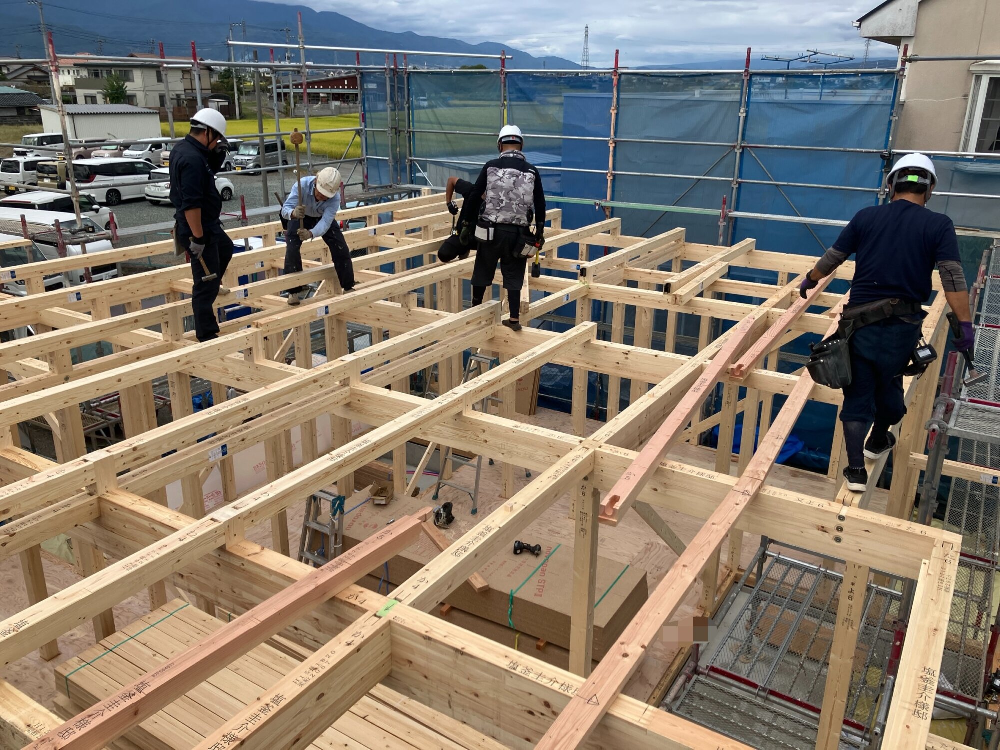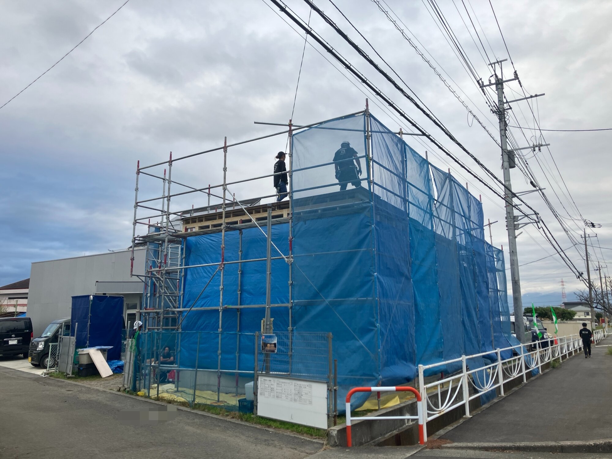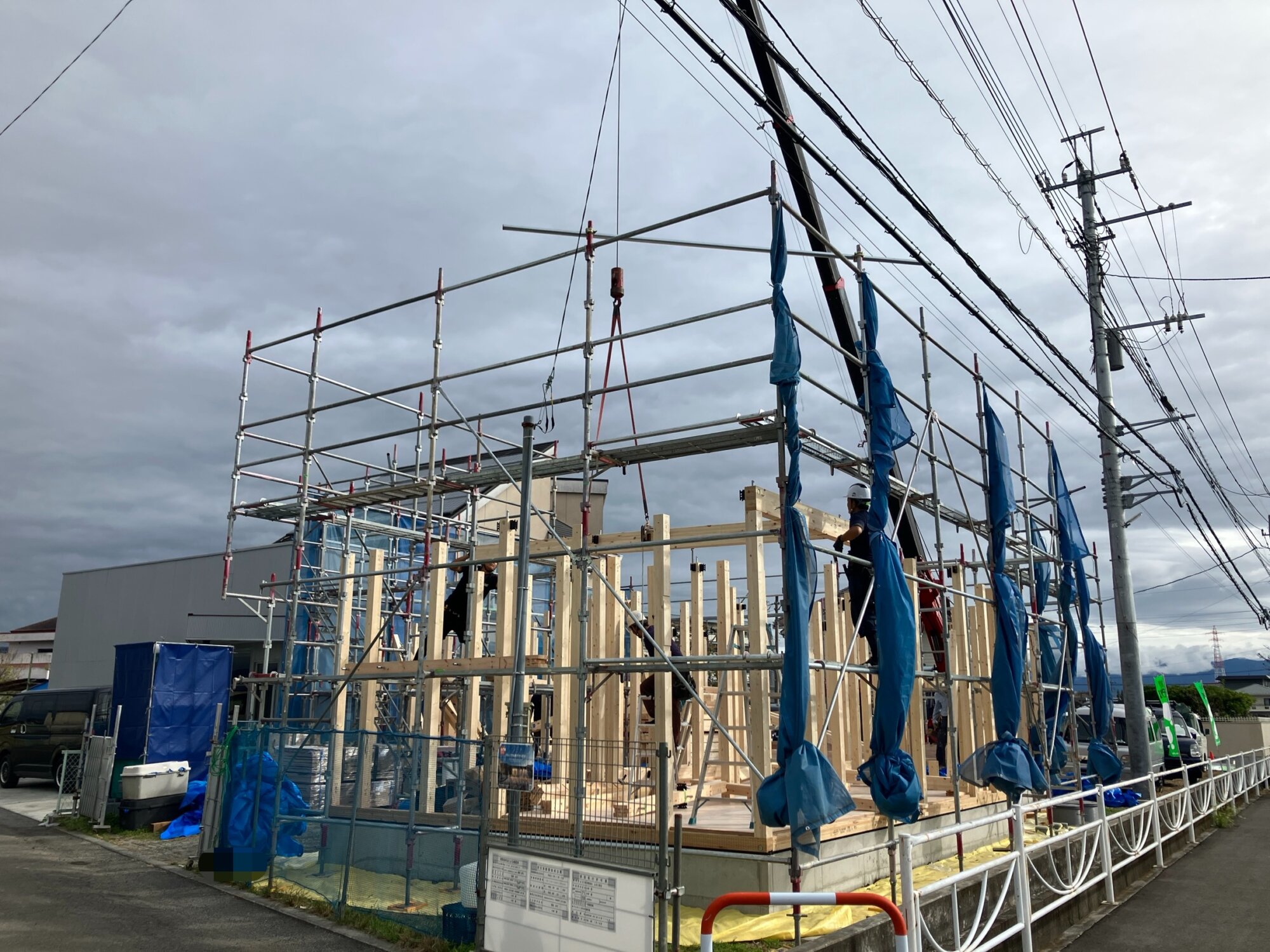 3日前に中央市のチェックハウス物件にて建て方作業を行いました。