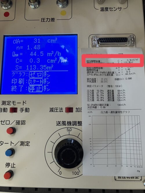 結果は、C値:0.3㎠/㎡