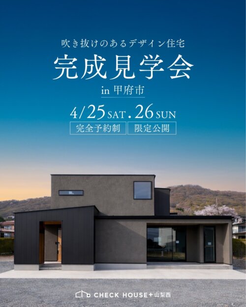 さて、今週末は甲府市のチェックハウス完成見学会を開催いたします!
