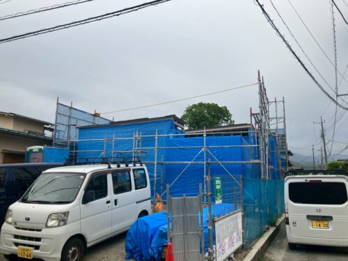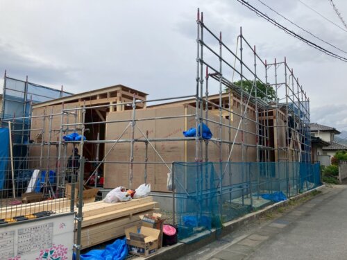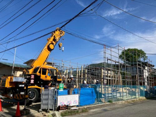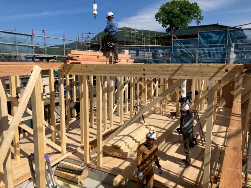 一昨日に笛吹市の現場にて建て方作業を行いました。
